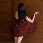 Introducing the Greenwich Bath Towel from BAINA in a jacquard gate/linear motif, and in Rhus - a deep, rich burgundy colour.